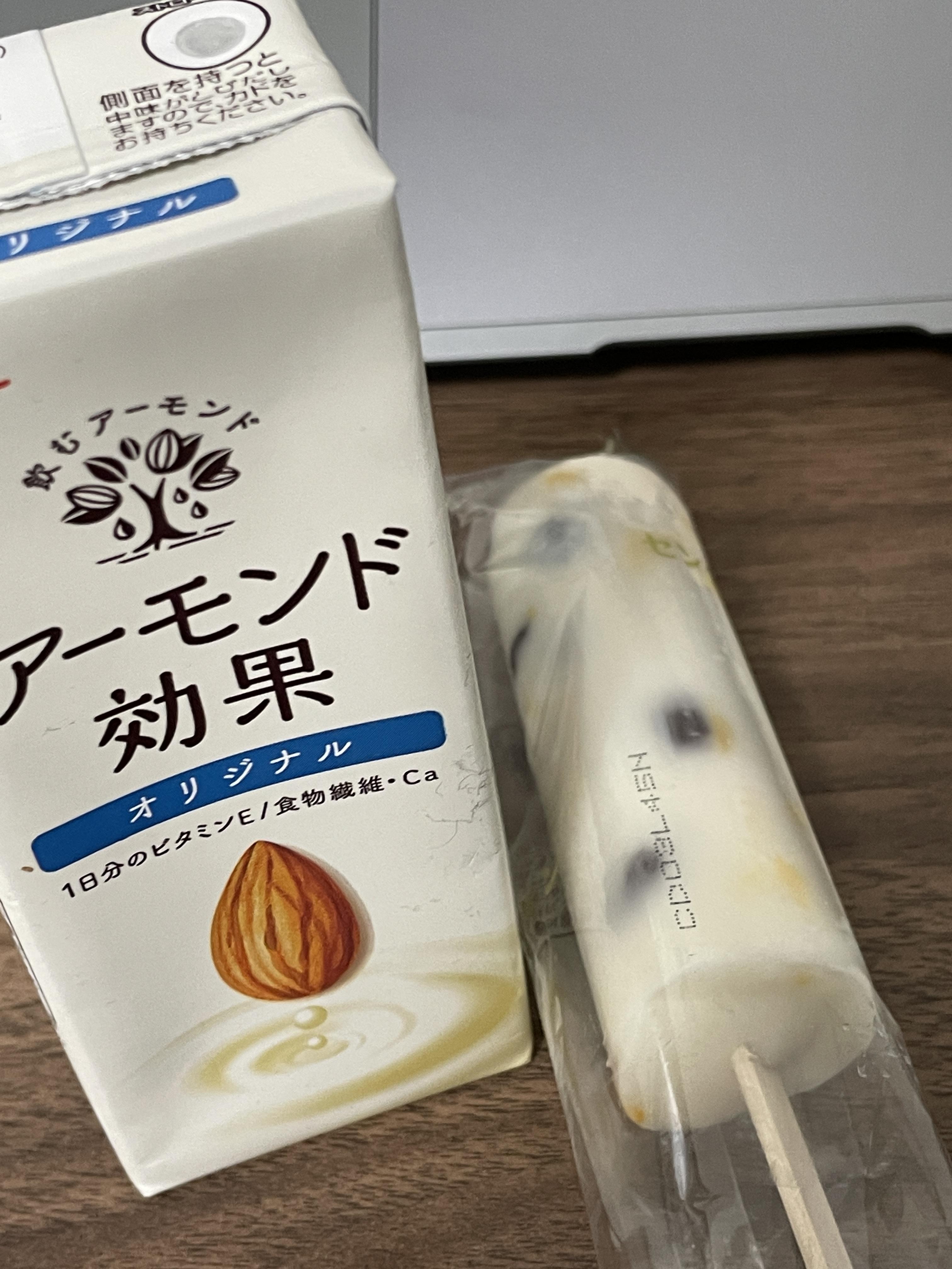 집에 와서 아까 사둔 것들 중에 아이스크림이랑 아몬드 우유를 간식으로 먹었다.